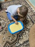-слушай внимательно и рисуй как робот картинку на подносе с кукурузной мукой;